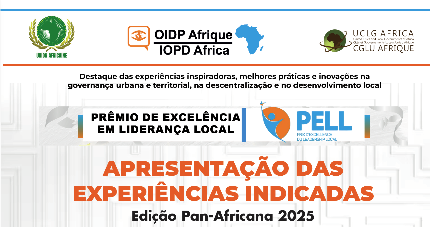 The Local Leadership Excellence Award had previously been organized at national and subregional levels. This Pan-African edition, organized by the International Observatory on Participatory Democracy in Africa, in collaboration with the African Union Commission and United Cities and Local Governments of Africa, aims to reward ministries, local authorities, journalists and communication professionals, academics and researchers, children and young creators, as well as engaged citizens involved in innovative initiatives promoting access to public services, citizen participation, and inclusive governance.